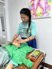 Students will learn how to prepare various kinds of herbs to use for facial massage, finger techniques 100 steps movement of cleansing, scrubbing, massaging, moisturizing and masking. We use all natural, non-chemical and organic herbal products.
