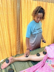 Students will learn how to warm body with oil massage and follow with hot stone massage movement techniques, how to place the stones on energy lines, proper use of body movements adapted from Tai chi techniques, face & head massage, and more practicing.